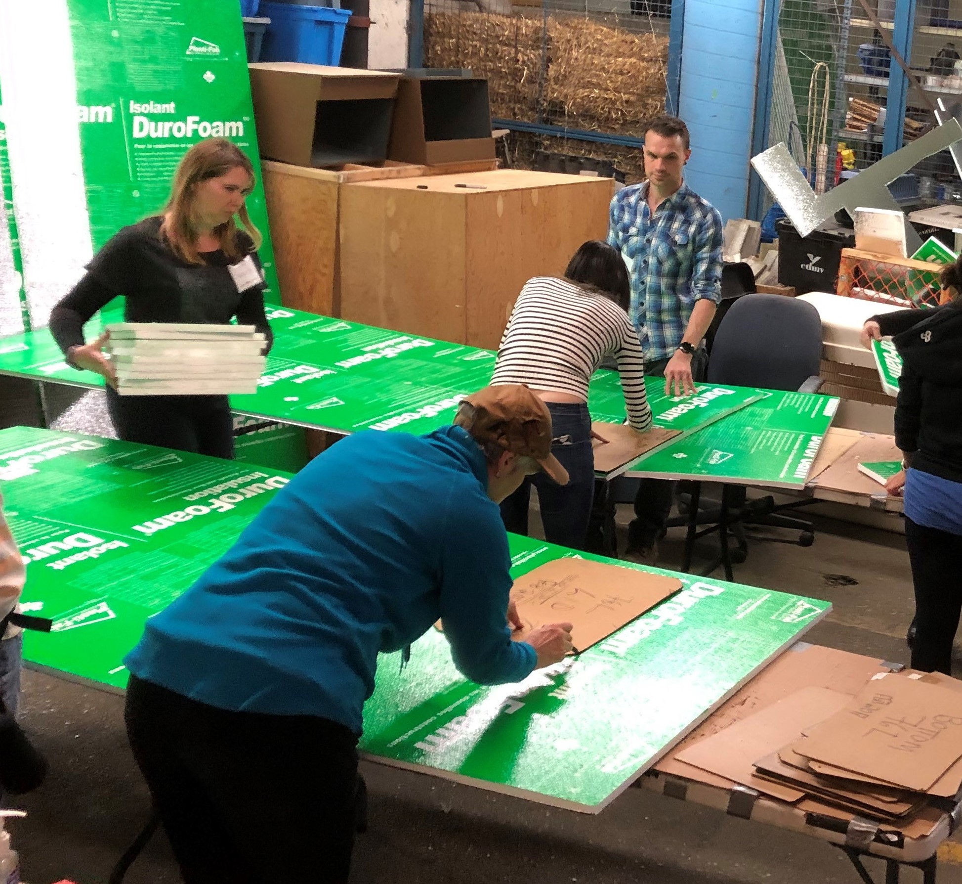 CUTTING DUROFOAM PIECES TO LINE THE PLASTIC TOTES